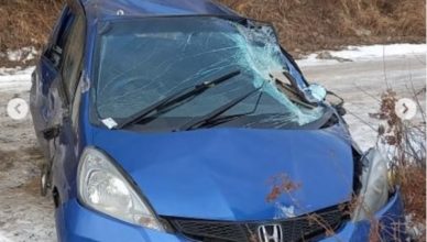 В районе улицы Нейбута во Владивостоке прохожие заметили Honda Fit в необычном положении. Легковушка с крупными повреждениями была брошена поперек дороги. Водителя рядом