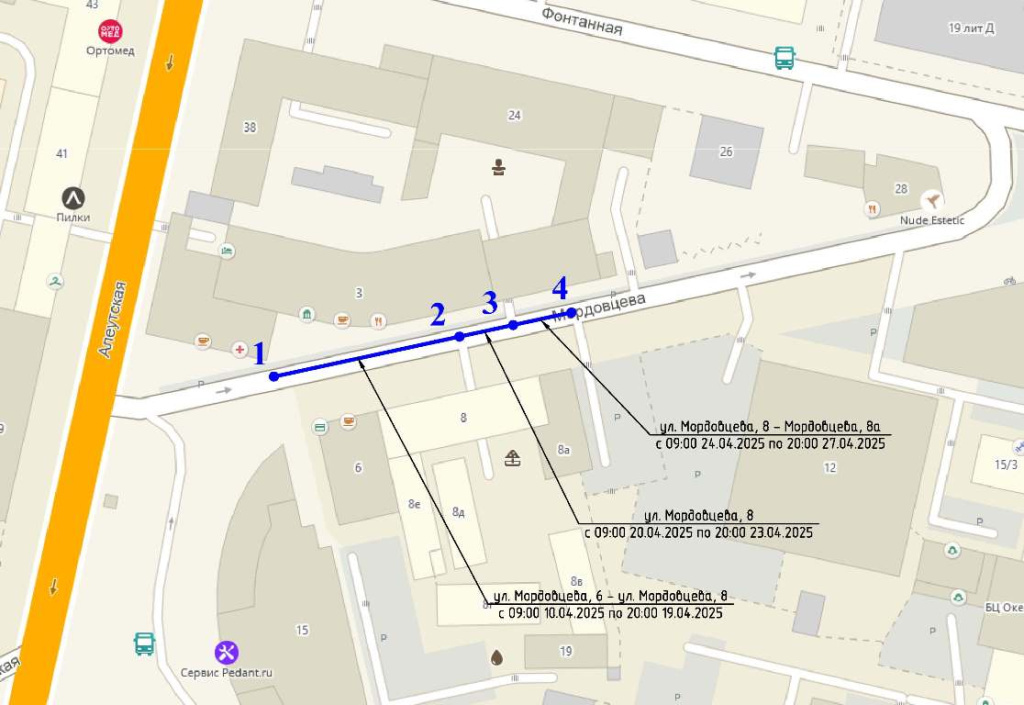 - 10-19 апреля – перекрыт участок от домов №6 до №8