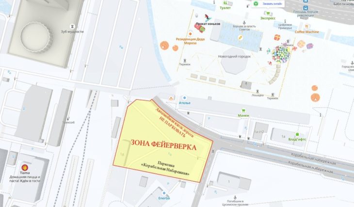Автомобилистов просят заранее забрать свои автомобили с этой парковки, а также воздержаться от парковки вдоль проезжей части в обозначенной зоне проведения салюта.