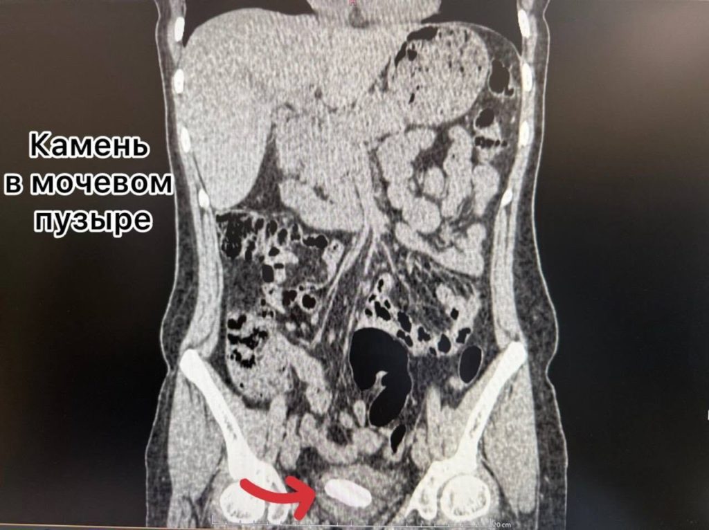 За это время на трубке образовались солевые отложения, сформировавшие крупные камни как в почке, так и в мочевом пузыре.