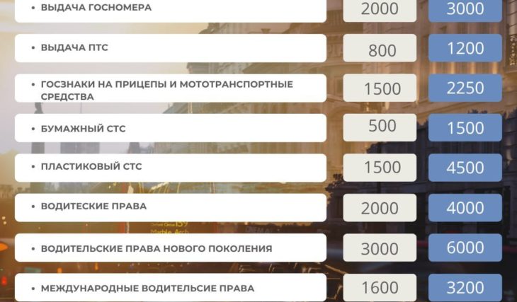 Существенно вырастут и другие автомобильные пошлины. За выдачу государственных номеров теперь нужно будет заплатить 3 тысячи рублей. Стоимость свидетельства о регистрации транспортного средства увеличится втрое: бумажный вариант будет стоить 1,5 тысячи рублей, а пластиковый — 4,5 тысячи. Получение паспорта транспортного средства (ПТС) подорожает с 800 до 1,2 тысячи рублей.