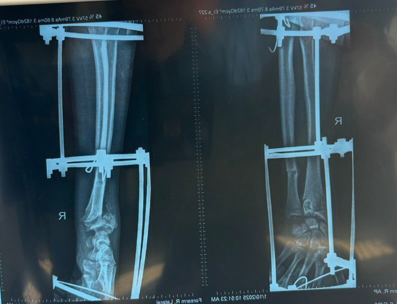 На последнем этапе врачи демонтировали аппарат и выполнили окончательную фиксацию. Но главным чудом, по словам медиков, стала невероятная воля к жизни самого пациента. Преодолев боль, воспаления и риск инфекций, он сделал свои первые шаги.