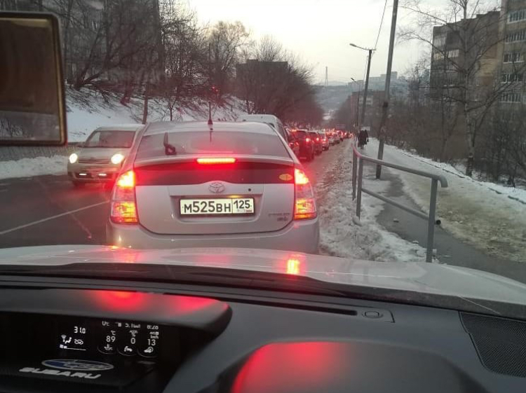 В эти минуты два района Владивостока встали в коловую пробку, сообщает otvprim.ru.
