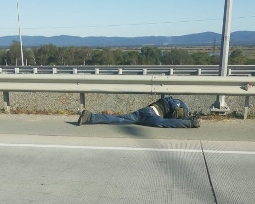 Известно лишь, что мотоциклист погиб: «Груз 200 лежит, он переломанный весь», — комментирует автор видео.