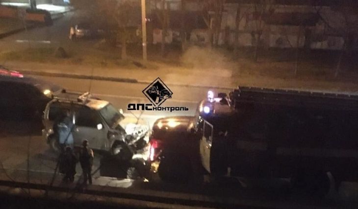 Со слов очевидцев, в стоявшую на проезжей части пожарную машину, тушившую косогор, влетел миниджип.