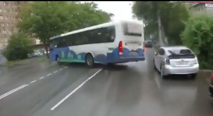 «Очередной гонщик за рулём автобуса, которому плевать на всё, в том числе и на жизни пассажиров! У него стоп сигнал горел с самого начала — он просто валил по дождю на все деньги, но тут появился нюанс в виде красного светофора», — уверены третьи.