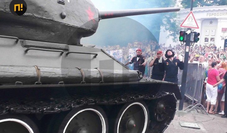 На Параде Победы в Севастополе головной танк Т-34 едва не въехал в зрителей, сообщает otvprim.ru.