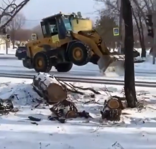 Он поставил спецтехнику на два задних колеса и ковш и так и передвигался. Мнение местных жителей по данному поводу разделились. Они одобрили такой способ («Виртуозный подход!»), другие не поняли («Мне кажется, так асфальту придёт кирдык быстрее…»).
