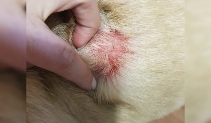 «Вычесали, называется, весь бок разодрали, еще и лапу вывернули», — написала автор и приложила фото, на котором у собаки явно виднеется красное пятно, как от разодранной шерсти.