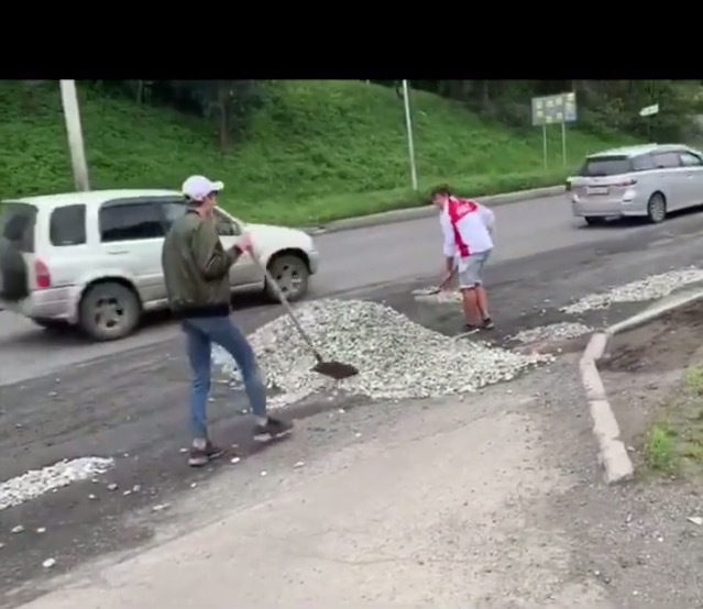 Неравнодушные жители Владивостока, потратив собственные средства, засыпали огромные ямы на участках дороги Луговая – Баляева, сообщает otvprim.ru .