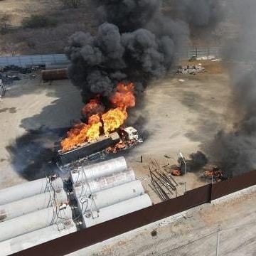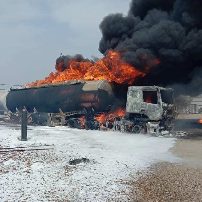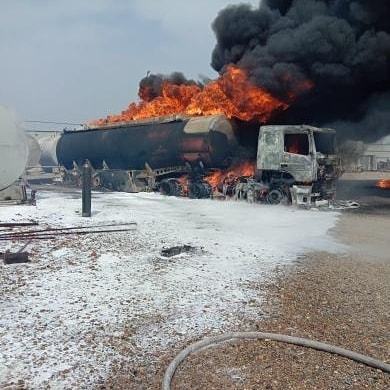 На момент прибытия горела цистерна топливозаправщика.
